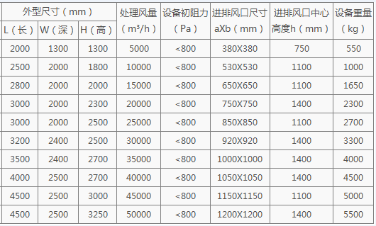 活性炭吸附裝置參數(shù)表